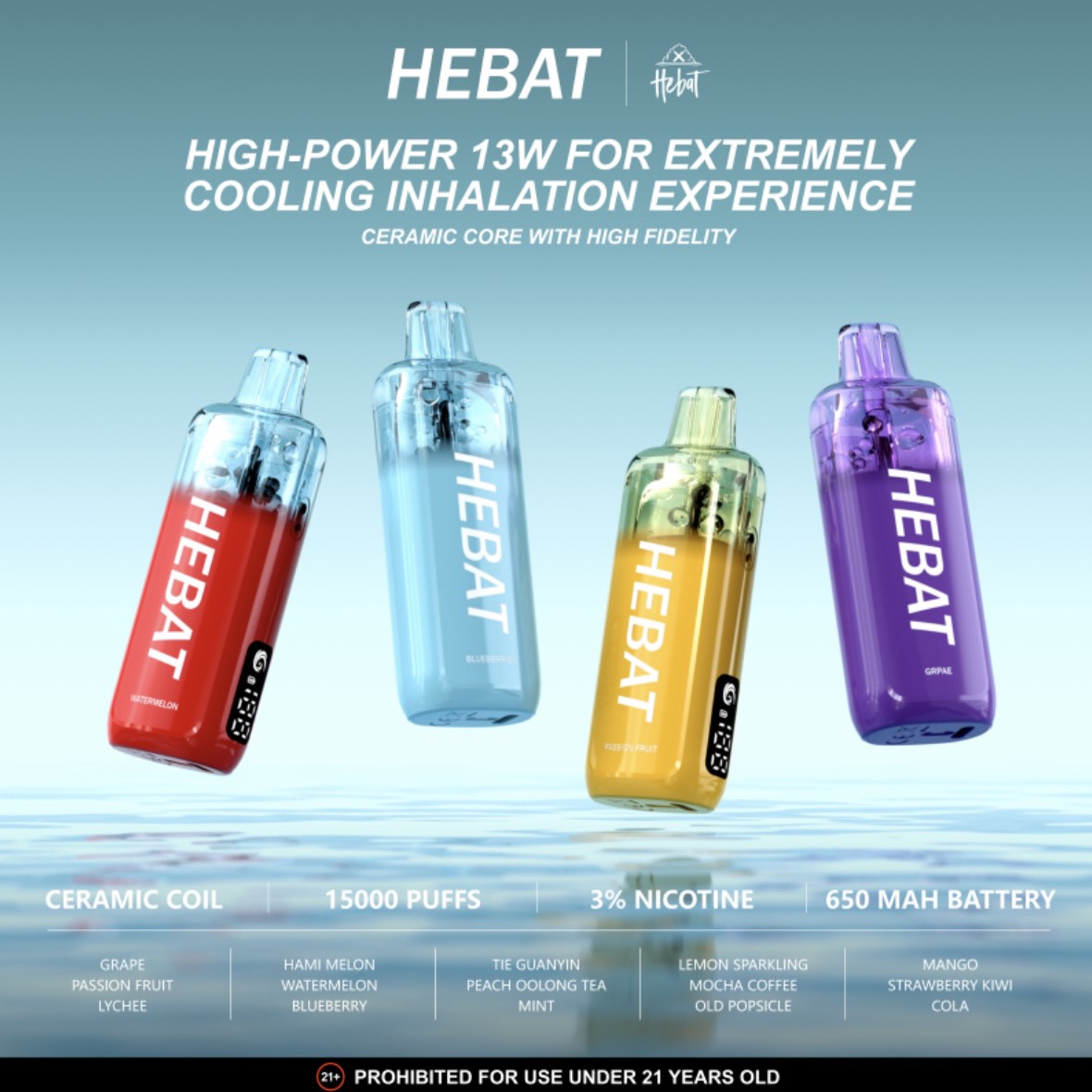 可樂, 鐵觀音, 西瓜, 綠箭薄荷, 藍莓, 摩卡咖啡, 老冰棍, 百香果, 哈密瓜, 檸檬氣泡, 荔枝, 葡萄, 芒果, 紅心芭樂, 奇異草莓, 蜜桃烏龍