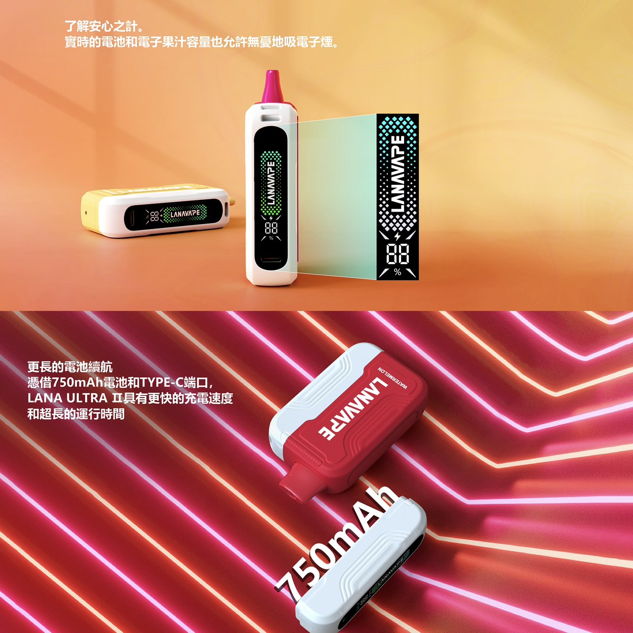 新品LanaVape Ultra II 16000口煙彈,活潑設計濃鬱色彩,搭載10ml 可換彈與16000 口續航,强勁輸出,23 種風味可選,磁吸設計方便好用,新手老玩家都能夠輕鬆駕馭(10mL大容量/ 750mAh強效續航/ 23款風味/ 買三送一).